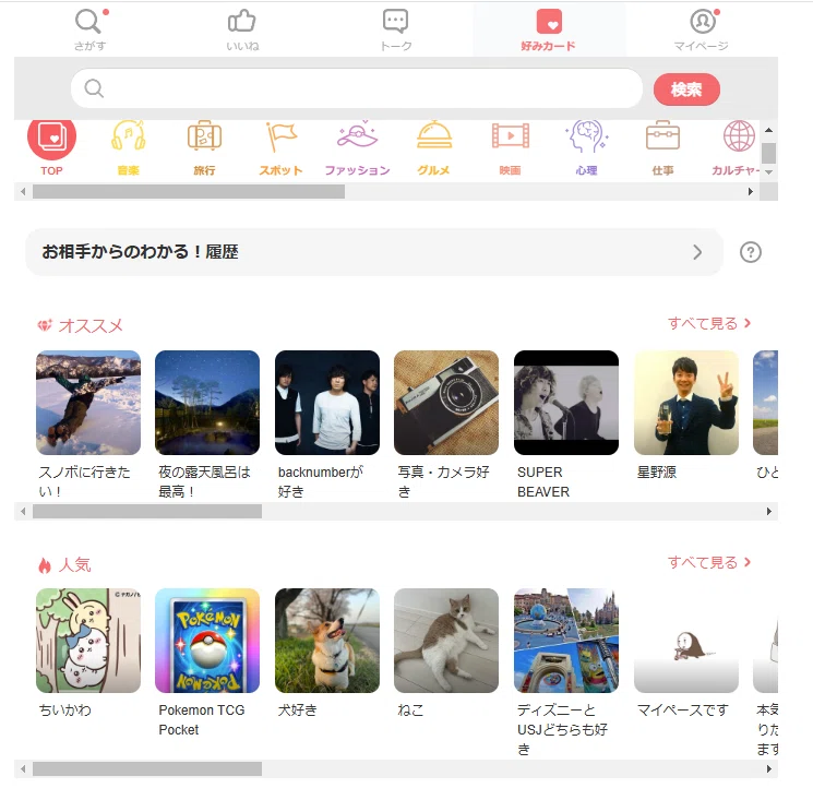 すると、同じカードを登録している女性会員が一覧として表示され、共通の趣味や価値観を持つ相手を効率的に見つけることができるというわけです!